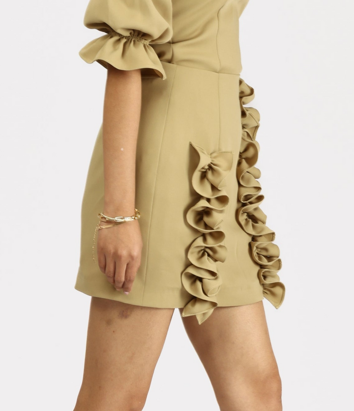 Fresh, feminine, and full of flair—this mustard yellow skirt brings structured romance to the forefront. the mini skirt is detailed with cascading ruffles that add movement and texture. Designed with discreet side zip closures on both pieces, this set ensures a seamless fit and easy wear. Ideal for summer soirées, brunches, or evening affairs, it’s a playful yet polished take on modern dressing.