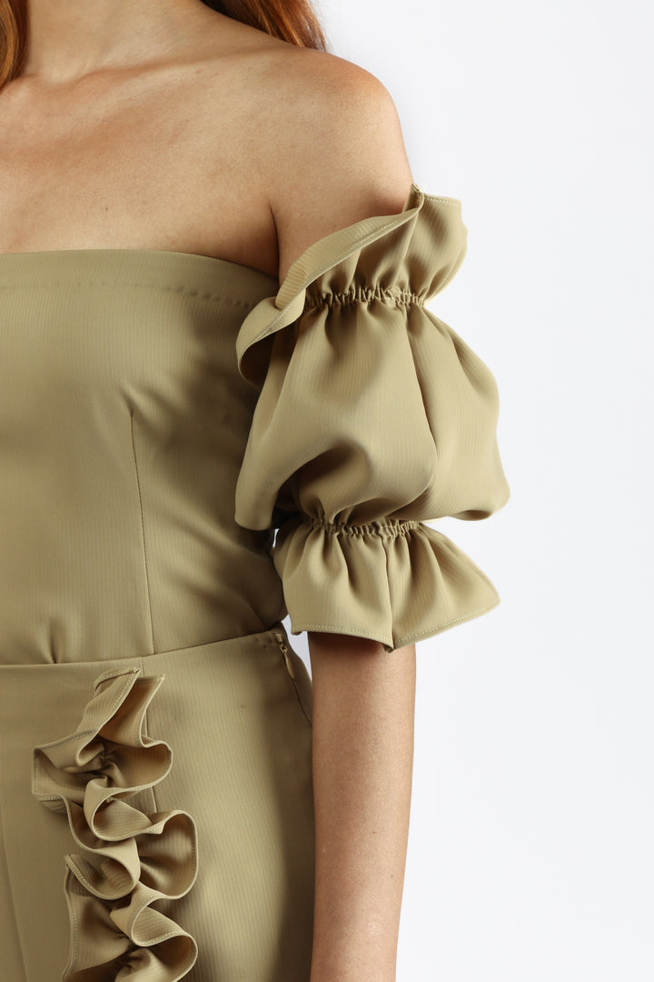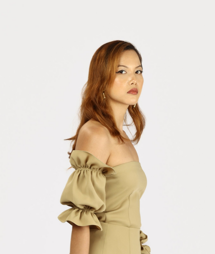 Fresh, feminine, and full of flair—this mustard yellow top brings structured romance to the forefront. The off-shoulder top features voluminous puff sleeves that are fully detachable, allowing you to switch effortlessly between bold and minimalist styling. The clean neckline balances the dramatic sleeve, creating a silhouette that’s both soft and confident.