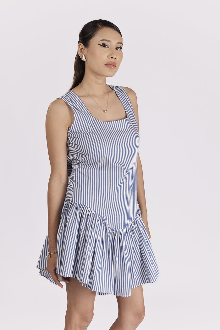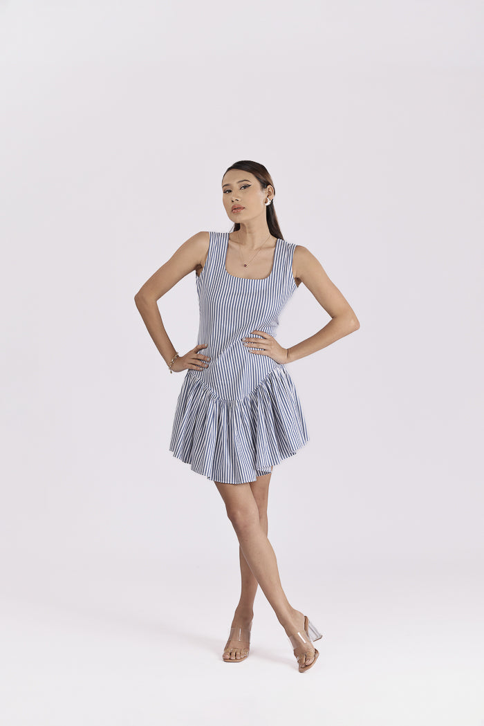 Light, breathable, and stylish, this pure cotton dress is perfect for brunches, lunches, and beyond. The striped pattern adds a playful yet refined touch, while delicate gathers create a flattering flare.